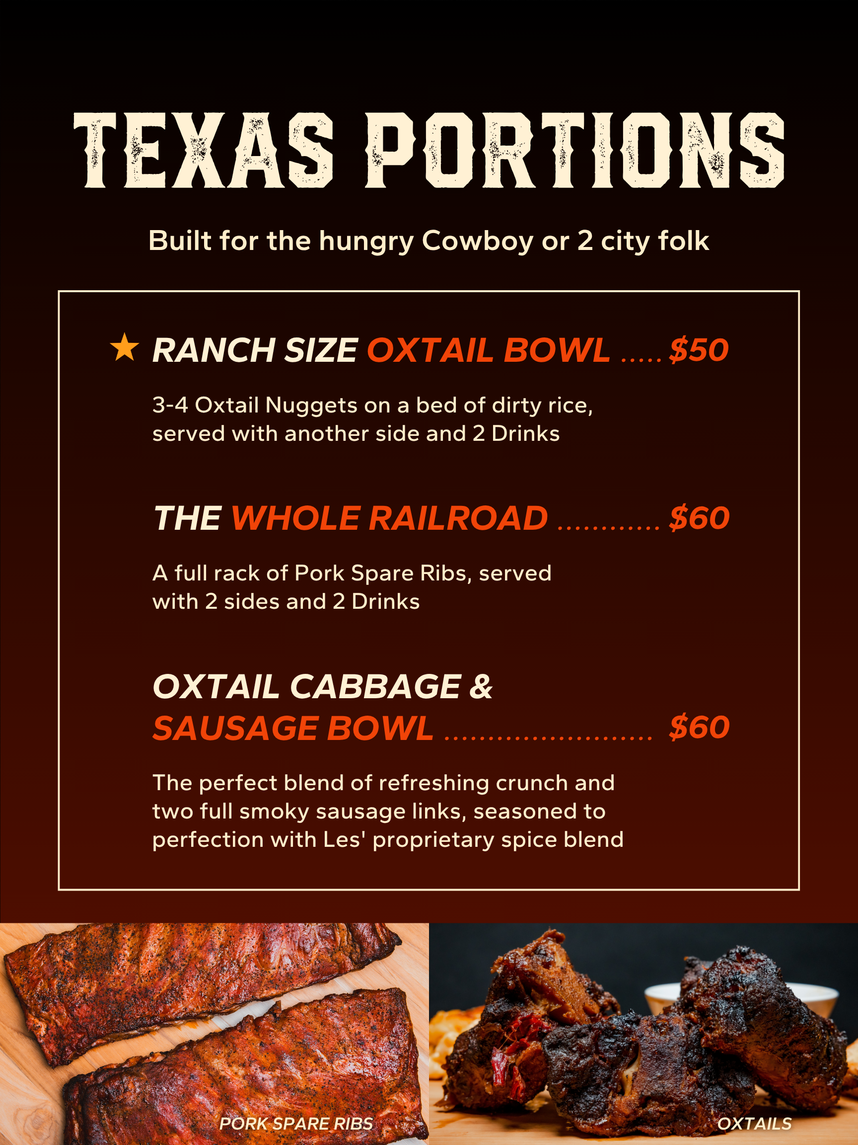 At Les BBQ, we let the flavor speak for itself. Choose from our premium selection of Weighed Meats, sold by the pound and smoked to perfection — from juicy pulled pork and tender brisket to our signature Famous Smoked Oxtails.